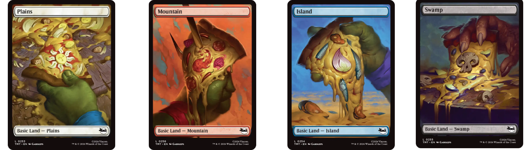 Plains, Forest, and Mountain have already been revealed with stylized TMNT art. These lands bring the flavor of NYC’s rooftops, underground hideouts, and street-level action into your mana base.