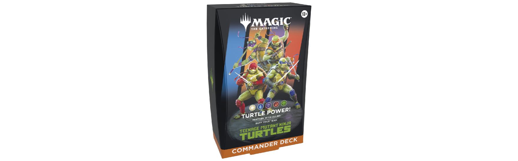 A standalone, Commander-legal 100-card deck themed around the TMNT universe, featuring unique cards not found in boosters.