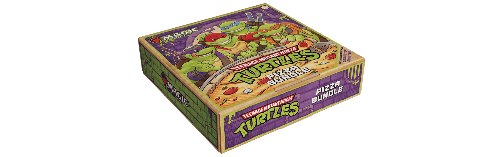 A special product containing pizza-themed cards, an oversized spin-down life counter, and a Collector Booster. Designed for collectors and franchise fans.