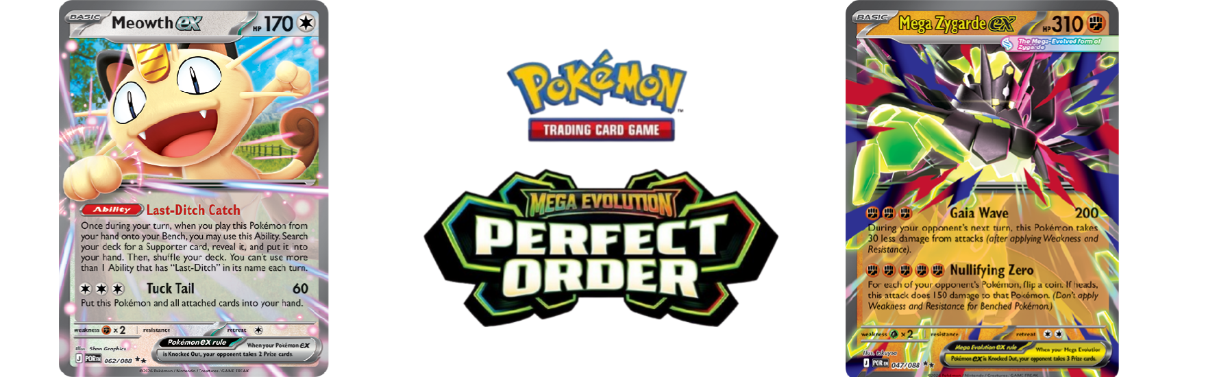 Mega Evolution—Perfect Order is the first core Pokémon TCG expansion based on Pokémon Legends: Z-A, following the earlier tie-in set Ascended Heroes. The expansion places Mega Zygarde ex firmly at its center, supported by Pokémon and Trainers themed around Lumiose City and the game’s urban, order-focused setting. The Japanese name of the set, Munikisu Zero, references Mega Zygarde’s signature move Nihil Light. The title’s abbreviation, “MZ,”. is a deliberate allusion to Team MZ and Mega Zygarde, two key elements within Pokémon Legends: Z-A.