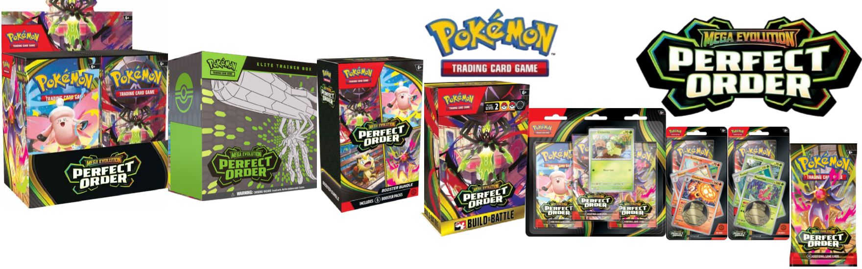 Mega Evolution—Perfect Order will release across the standard Pokémon TCG product lineup. Below is a breakdown of each confirmed product and its contents.