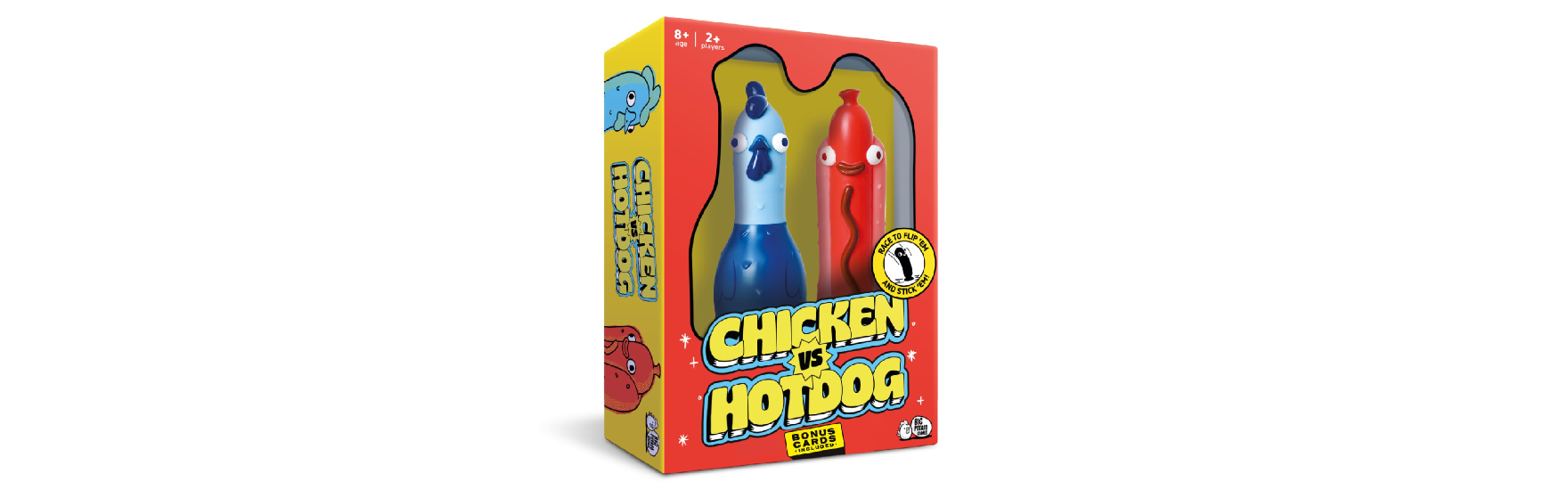 Chicken vs Hotdog brings physical challenges into the mix. Instead of answering questions or guessing words, players use small launching slings to flip and land character pieces in creative ways.