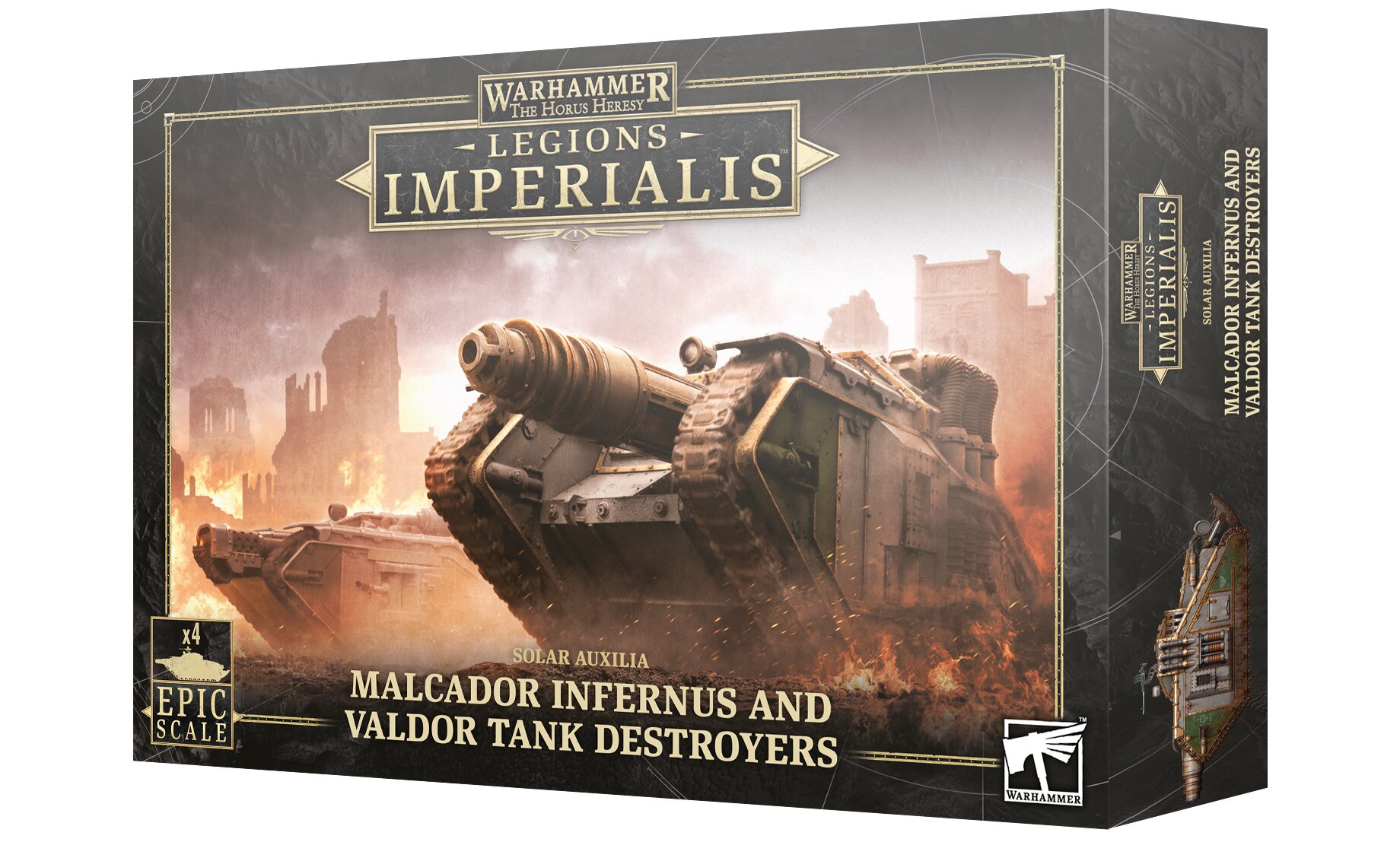 Within the box, you will find a pair of Malcador Infernus and a pair of Valdor Tank Destroyers. Each vehicle offers the choice between lascannon or autocannon sponsons, granting you a wide range of possibilities for expanding your Solar Auxilia force.
