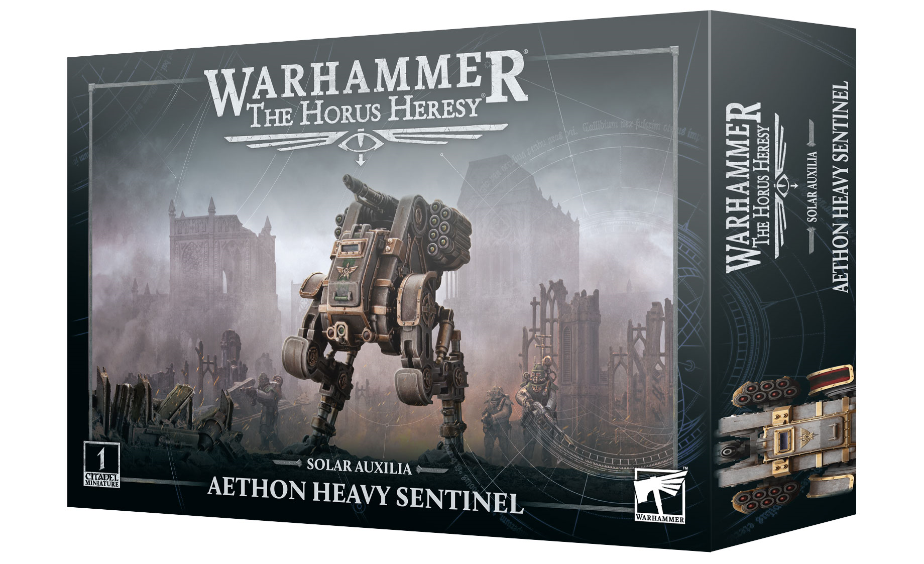 The Aethon Heavy Sentinel, initially introduced in Legions Imperialis, is frequently spotted in the Age of Darkness due to its extensive armament compared to other reconnaissance vehicles. It features a versatile central weapon mount and a powerful rocket system capable of heavy barrages. The standard multi-laser can be replaced with various other weapons such as autocannons, heavy incinerators, and volkite culverins for infantry targets, or lascannons and melta-lances for armored vehicles.