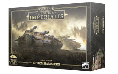 The Stormhammers are imposing war machines, resembling rolling fortresses, armed with an impressive array of powerful weapons. They are often witnessed thundering into the battlefield alongside Solar Auxilia Tercios and a convoy of smaller tanks, obliterating their adversaries. This package offers you the opportunity to acquire two of these formidable super-heavy tanks, designed at an epic scale. Each tank can be assembled with either multi-laser or lascannon sponsons, providing you with versatile options.