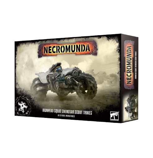 The Ironhead Squat Svenotar Scout Trikes are an excellent enhancement for any Ironhead Squat Prospector gang. The accompanying Techmite Oculi enable precise targeting even during movement.
