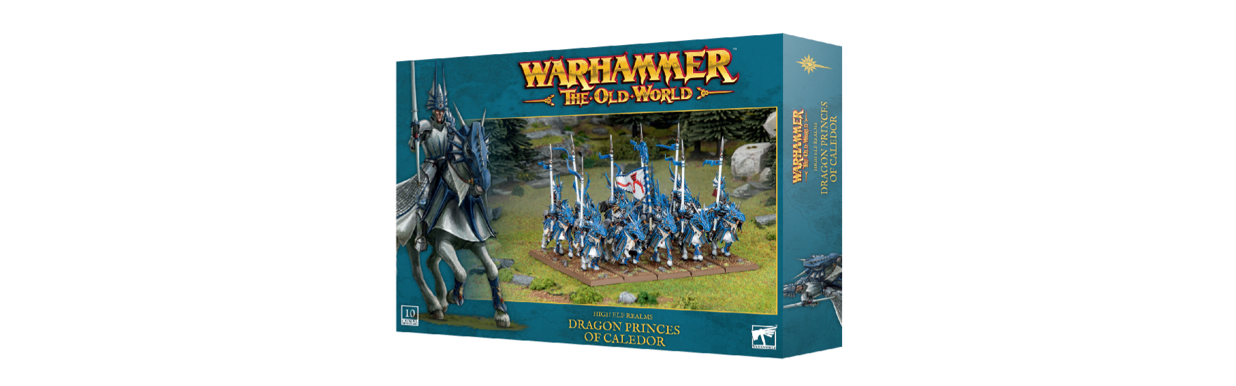 The Games Workshop Warhammer The Old World High Elf Realms Dragon Princes of Caledor kit allows you to assemble 10 Dragon Princes of Caledor, including enough components for two units of five. It also includes a transfer sheet featuring 356 High Elf Realms transfers.